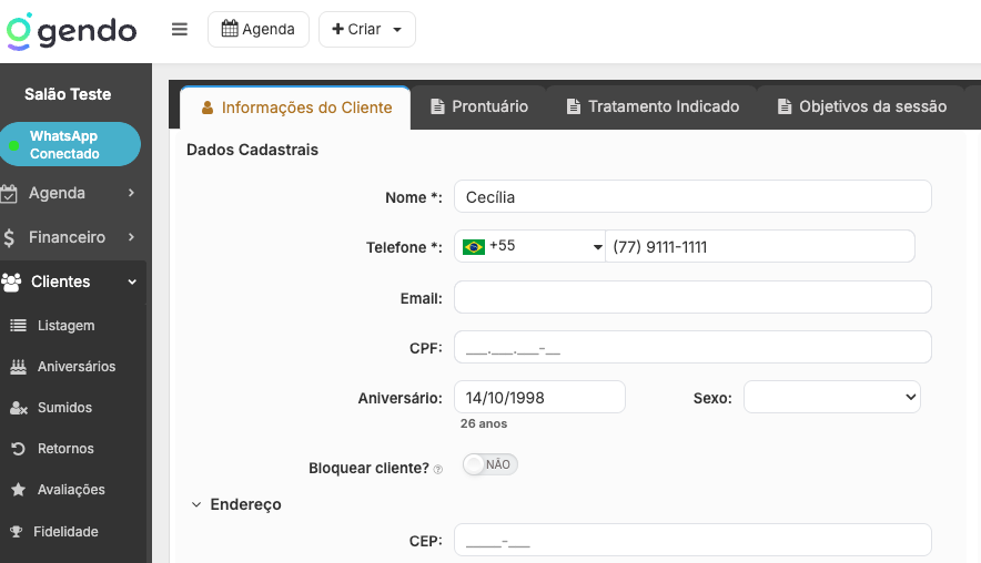 Agora você pode acompanhar a idade dos seus clientes de forma automática, calculada pelo sistema.