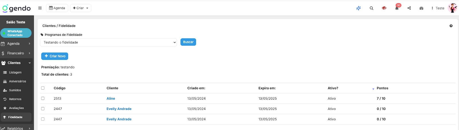 - Acesse Clientes > Fidelidade.